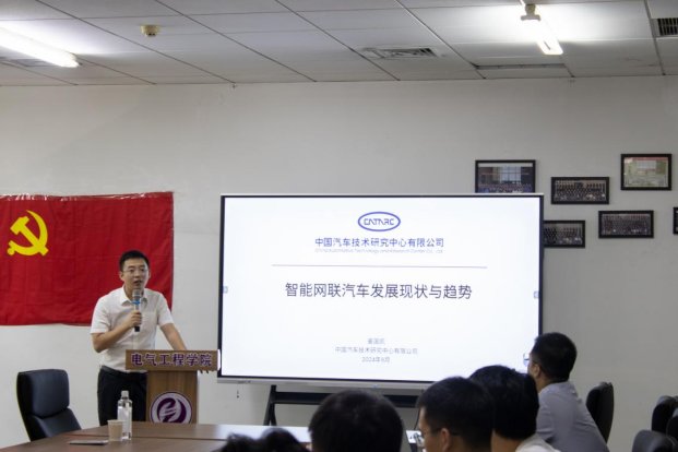 2024年9月13日,应天津工业大学电气工程学院邀请,中国汽车技术研究中心有限公司的姜国凯高级工程师以“智能网联汽车发展现状与趋势”为主题,为学院师生作了一场学术报告。报告会由电气工程学院科研副院长耿强主持。