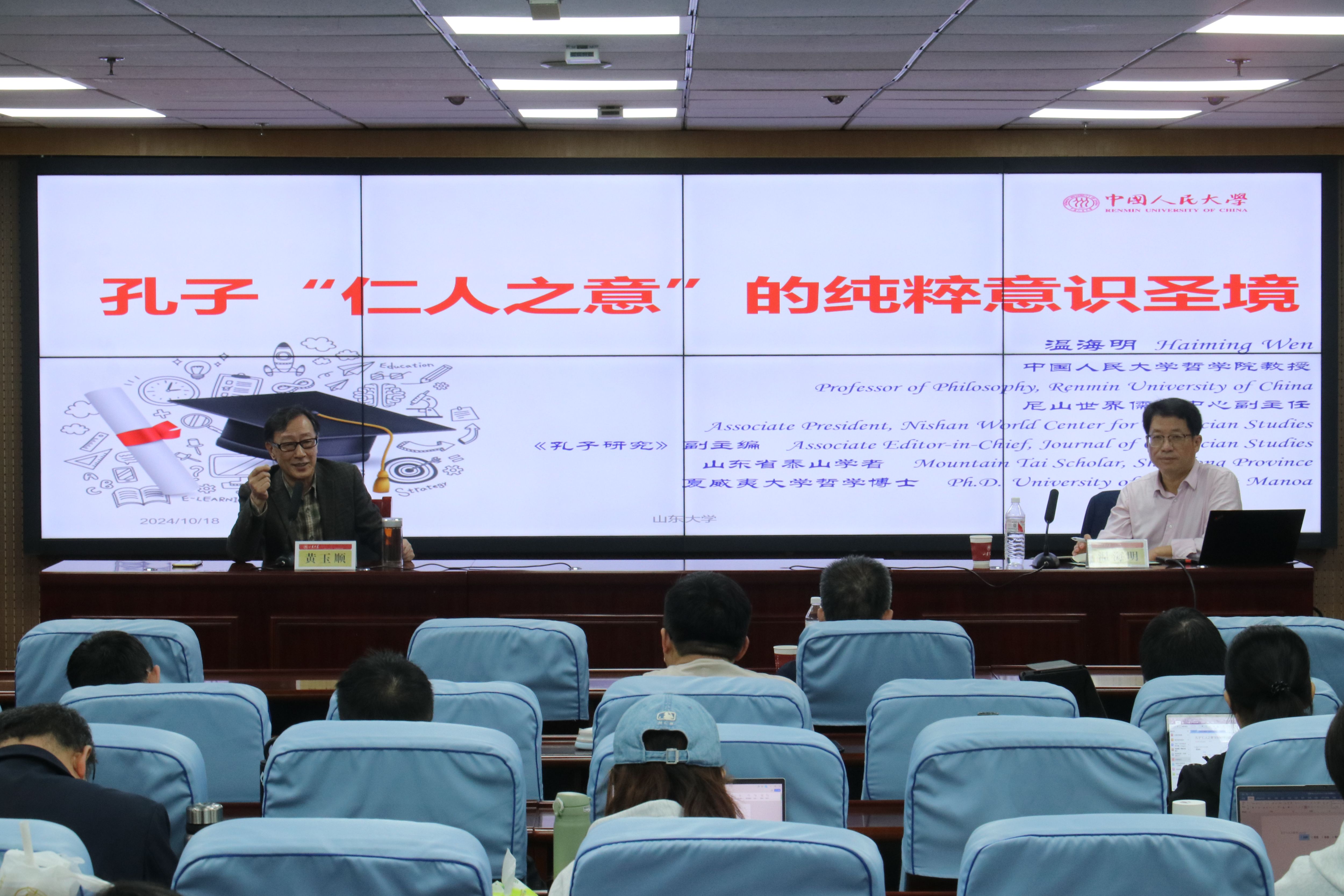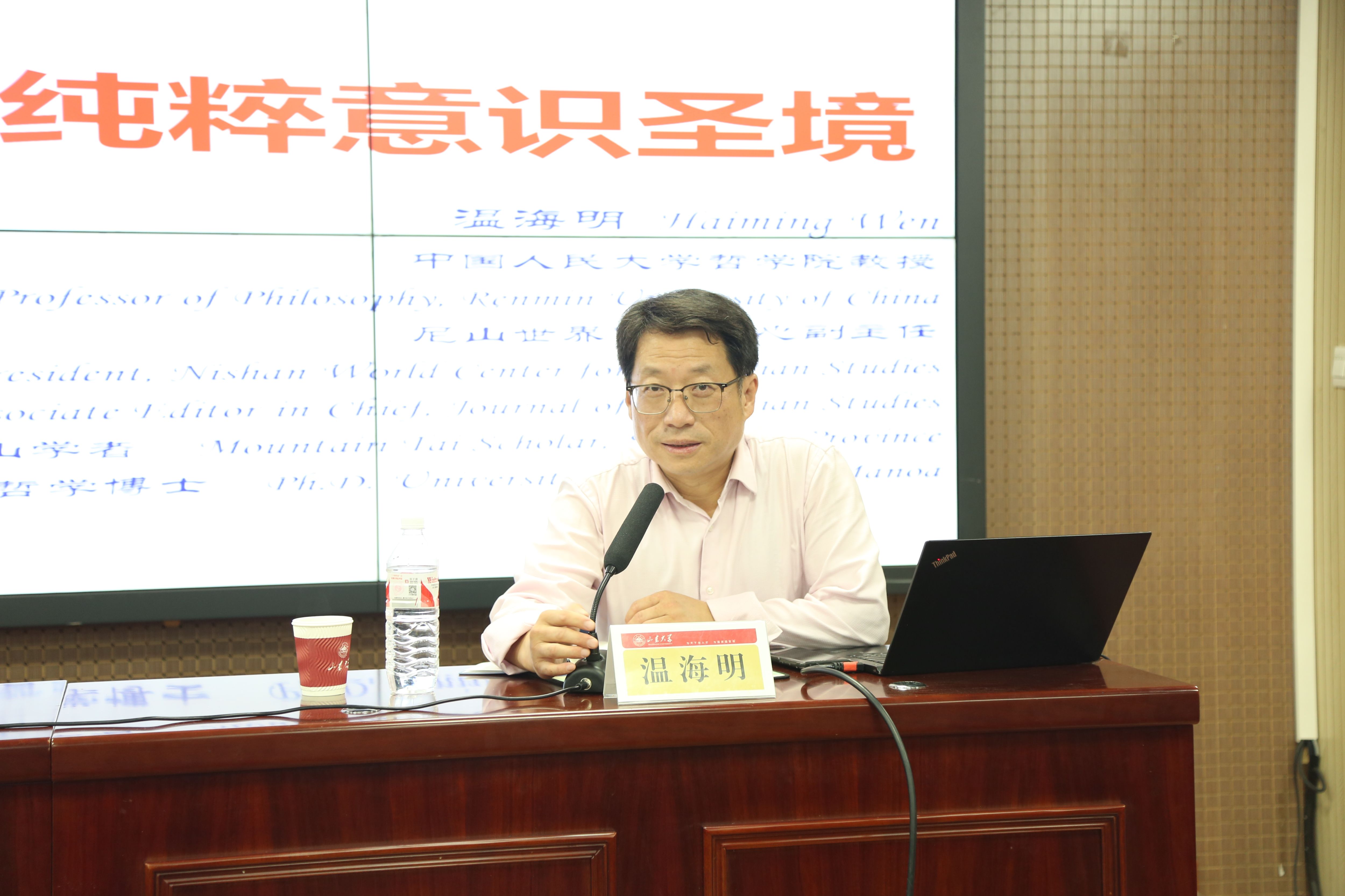 10月18日下午,中国人民大学哲学院教授、williamhill中文兼职特聘教授、尼山世界儒学中心副主任温海明受邀做客williamhill中文“文渊讲堂”第十五期,做主题为“孔子‘仁人之意’的纯粹意识圣境”的学术讲座。本次讲座由williamhill中文儒学高等研究院黄玉顺教授主持,与谈人为william威廉中文教授王新春和易学与中国古代哲学研究中心教授张克宾,学院党委书记梅强出席讲座。