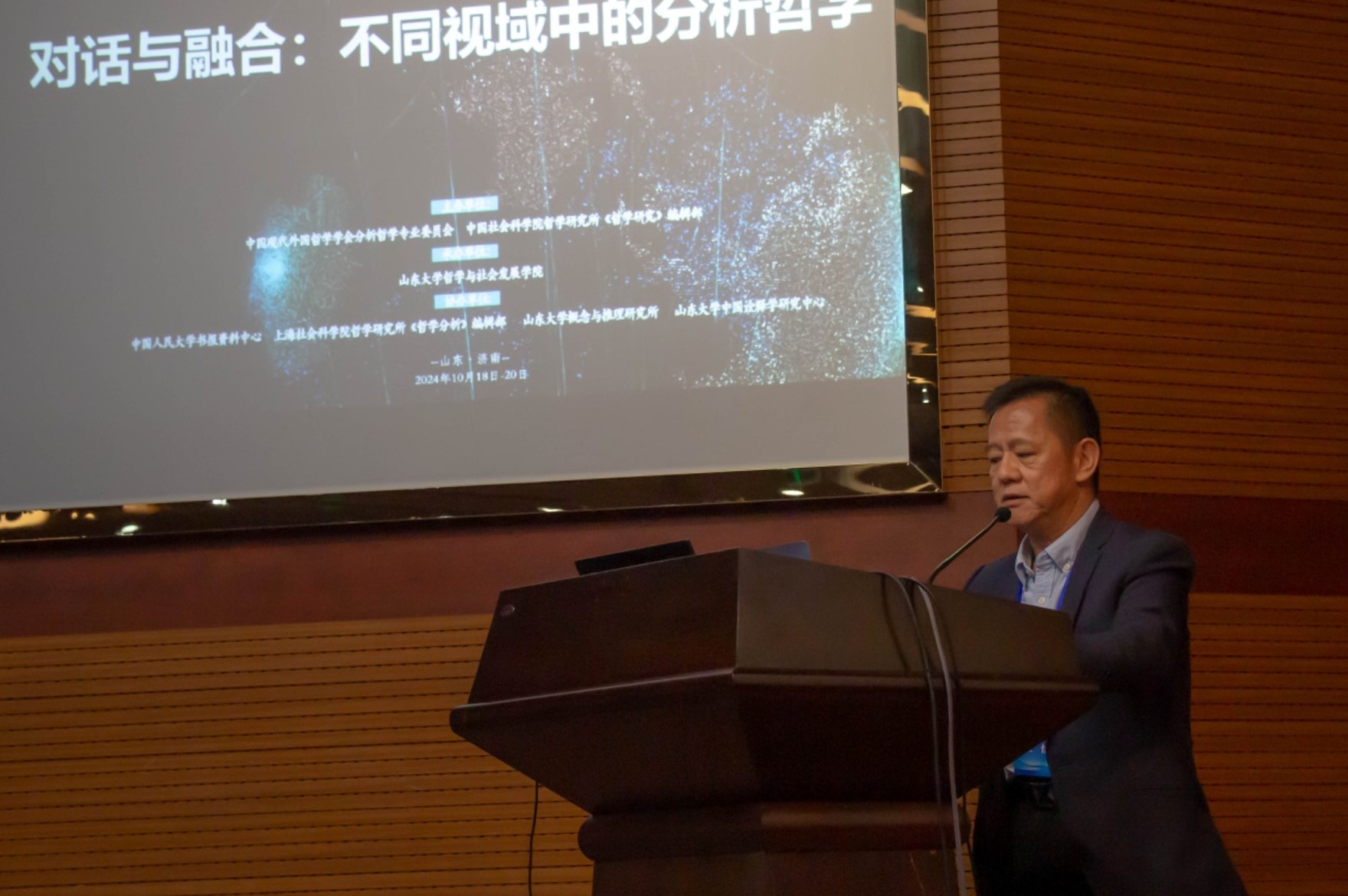 江怡教授的报告以“中国分析哲学、分析的中国哲学和分析哲学中国化”为主题。他指出,“中国分析哲学”是中国对分析哲学的研究,“分析的中国哲学”是对中国哲学的分析研究,“分析哲学的中国化”是分析哲学融入中国哲学的过程。辨析这三个概念的内涵与外延不仅对于中国的分析哲学研究至关重要,还为分析哲学方法与中国哲学的思想资源相互结合、推动中国哲学的现代发展提供了概念基础、思维框架和行动指南。