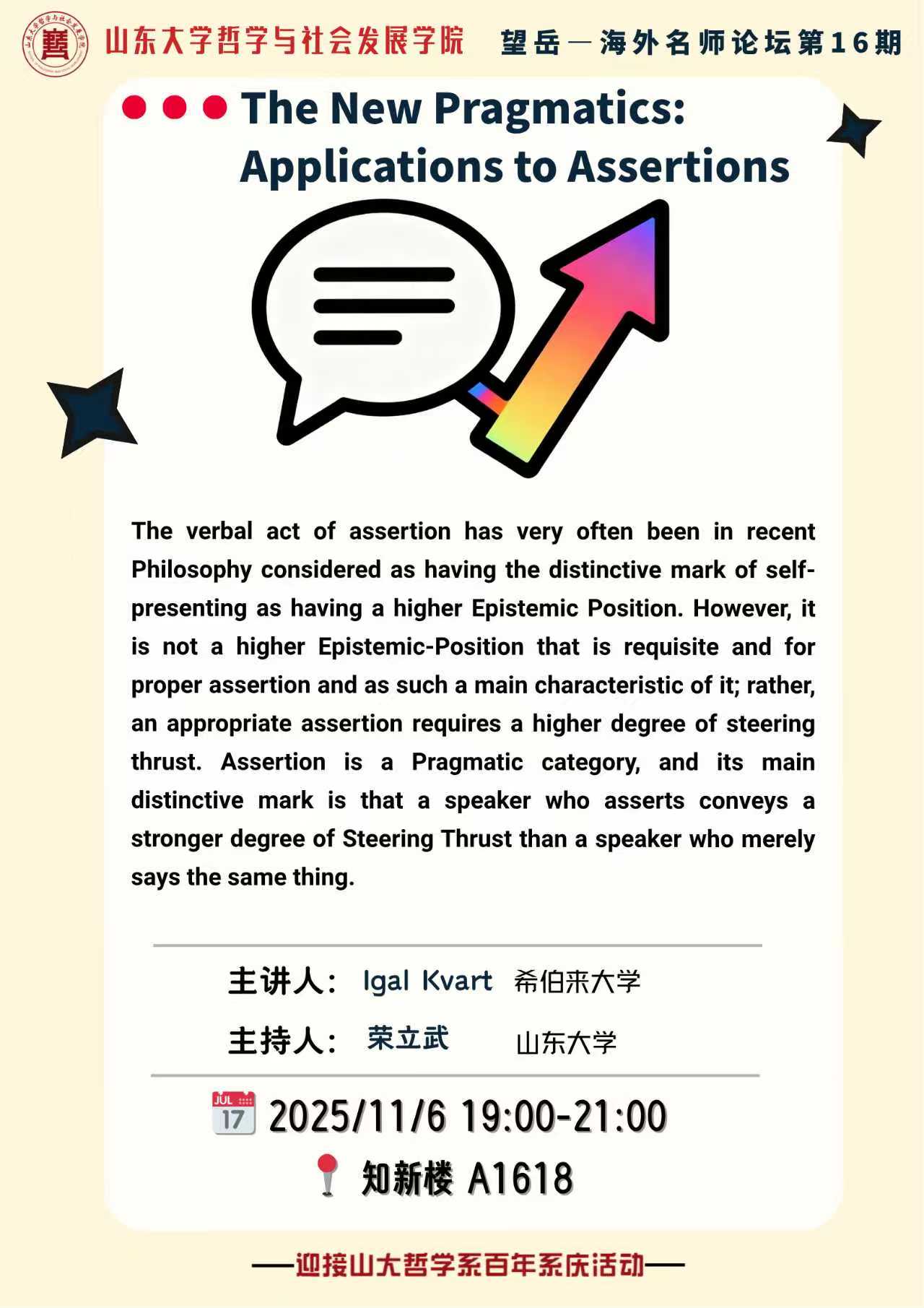 The verbal act of assertion has very often been in recent Philosophy considered as having the distinctive mark of self-presenting as having a higher Epistemic Position. However, it is not a higher Epistemic-Position that is requisite and for proper assertion and as such a main characteristic of it; rather, an appropriate assertion requires a higher degree of steering thrust. Assertion is a Pragmatic category, and its main distinctive mark is that a speaker who asserts conveys a stronger degree of Steering Thrust than a speaker who merely says the same thing.