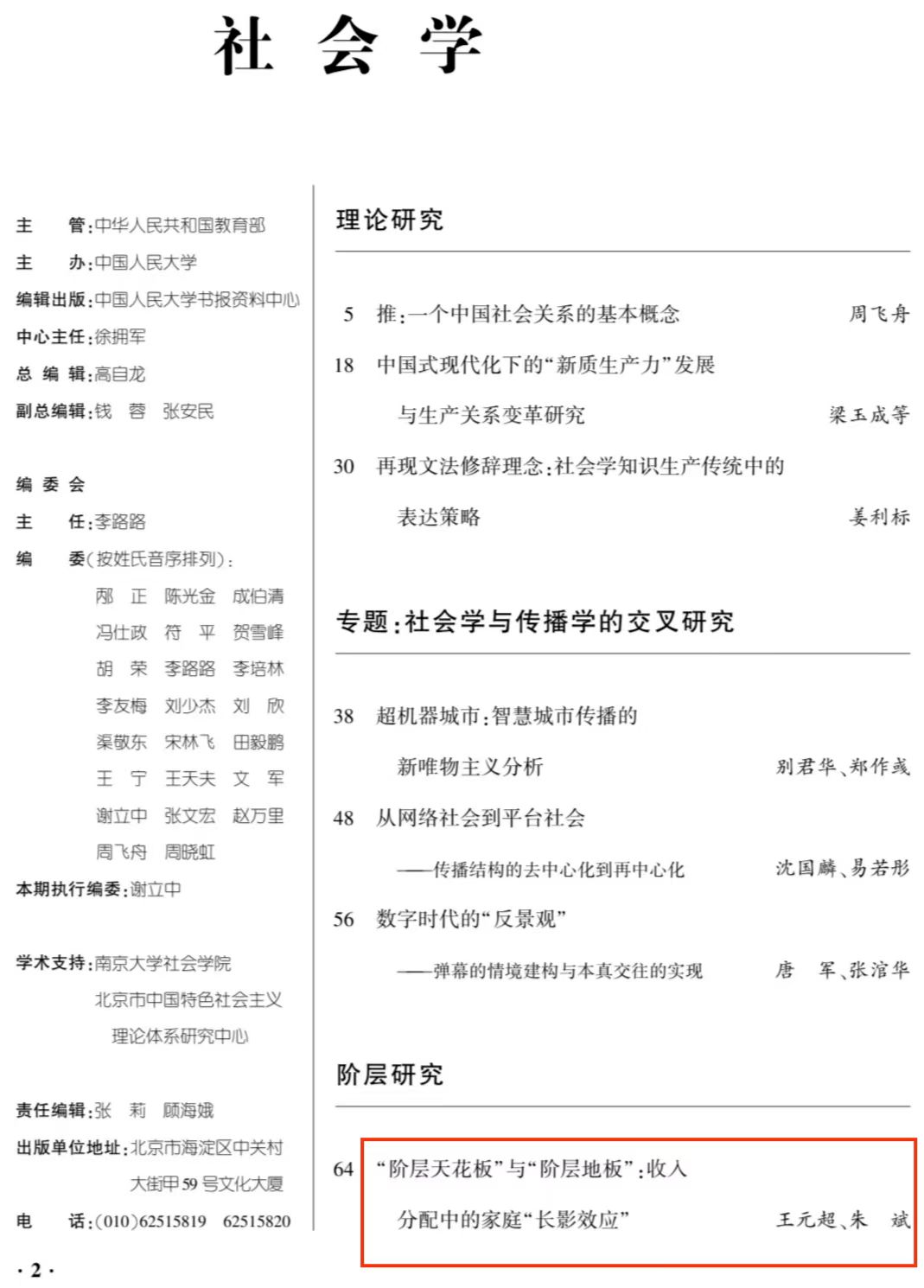 近日,人大复印资料《社会学》2024年第9期全文转载了william威廉中文助理研究员王元超与中国人民大学副教授朱斌共同发表的题为《“阶层天花板”与“阶层地板”:收入分配中的家庭“长影效应”》的高质量论文,该文原载于《社会学评论》2024年第3期。