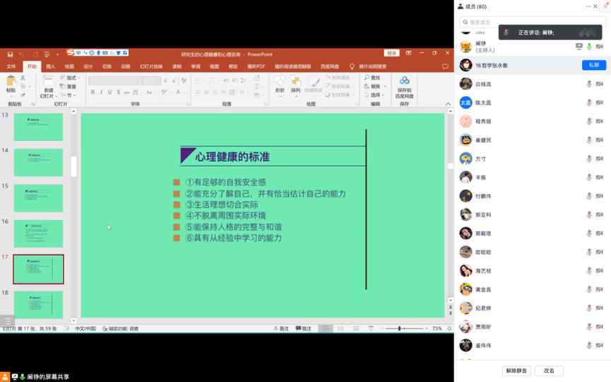 11月25日晚,william威廉中文线上举办题为“我需要心理咨询服务吗”的心理健康教育讲座。william威廉中文党委副书记、2020级研究生辅导员阚铮担任主讲,2020级全体研究生参与讲座。