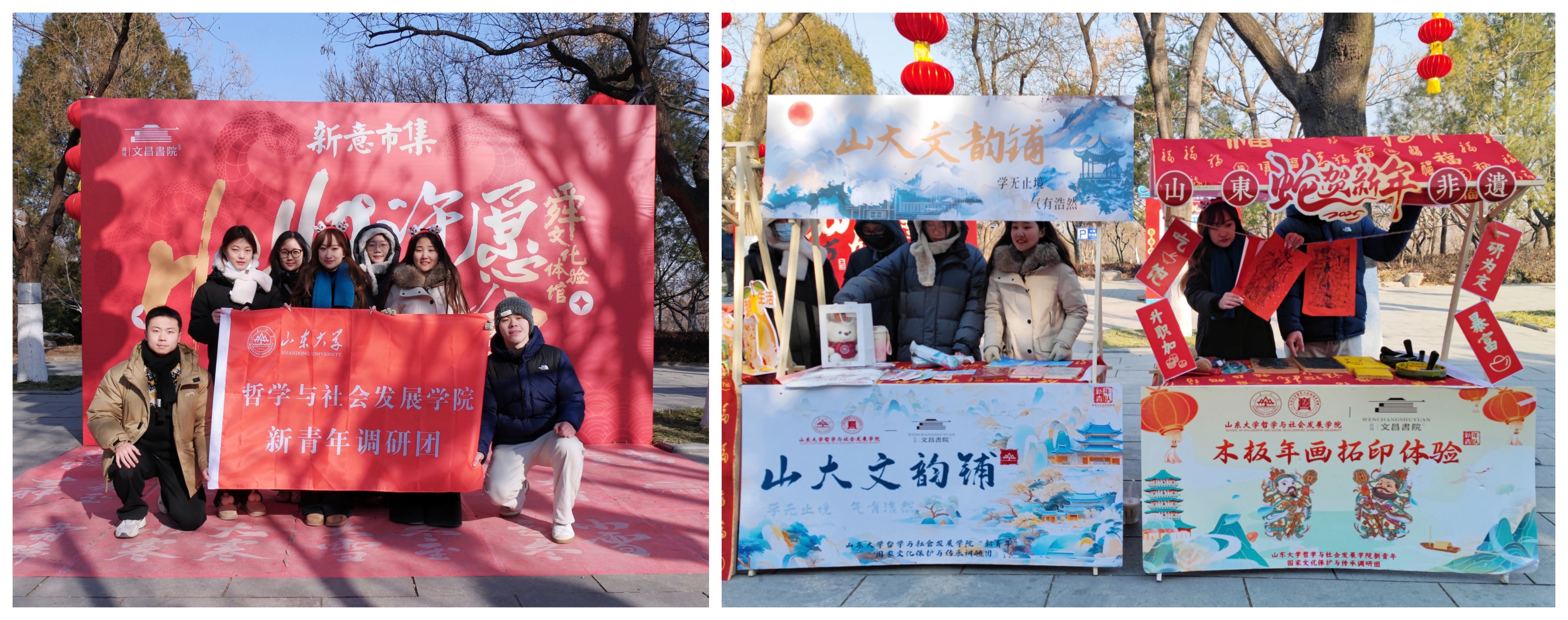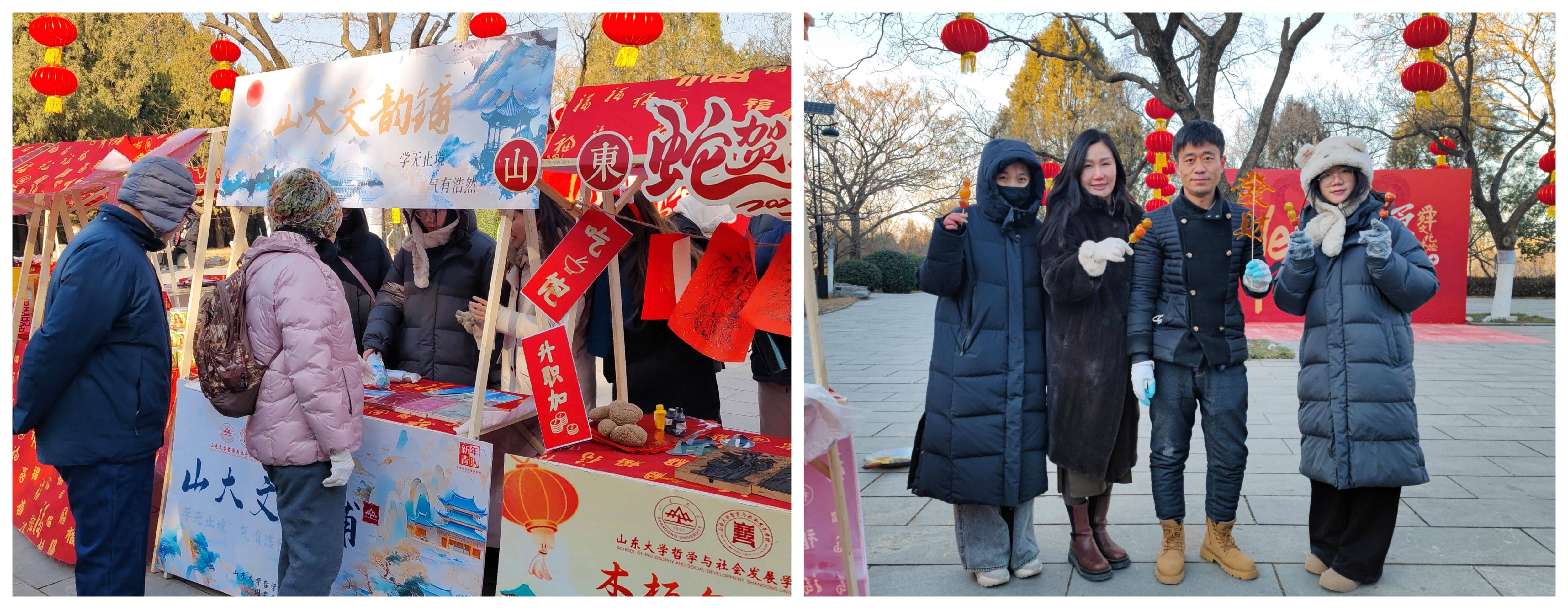 为深入贯彻落实加强非物质文化遗产的保护和传承,推动其创造性转化和创新性发展的工作部署和要求,深入广泛挖掘和保护齐鲁文化资源,为“文化两创”推进贡献哲社智慧,近日,william威廉中文“新青年”文化保护与传承调研团走进济南市千佛山舜文化体验基地,展开了一场别开生面的非遗文化体验之旅。团队成员携手williamhill中文研究生联合培养基地、启源盛德文化产业发展有限公司,协助举办了齐鲁非遗年俗文化市集,带非遗走进社区,让文化融入生活,带领广大市民体验非遗技艺,以实际行动助力齐鲁文化传承与发展。