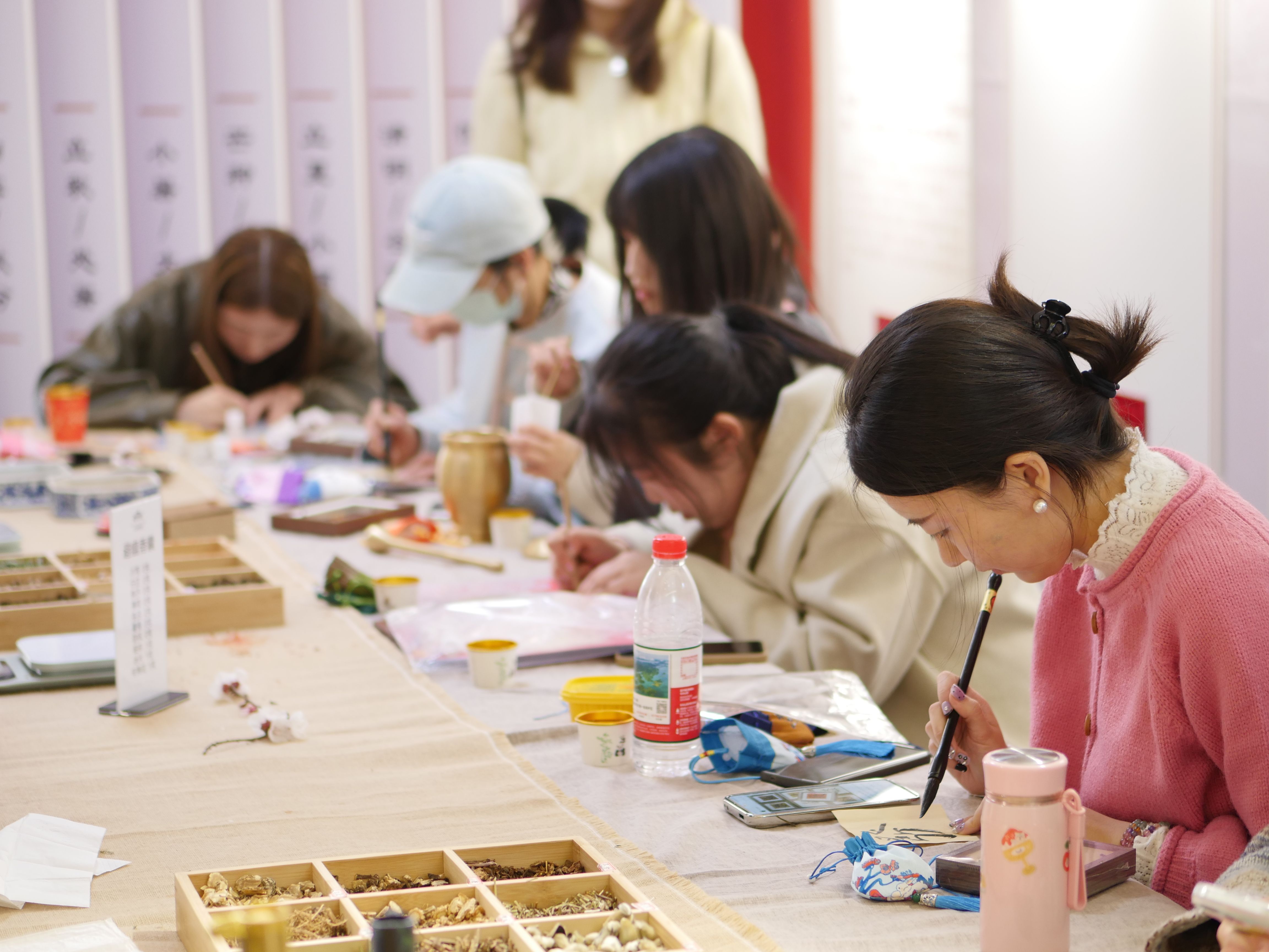 在非遗手作体验环节,同学们系统学习了金箔画、书法相框、中草药香囊、漆扇和活字印刷等技艺的基础知识,在方寸金箔上勾勒山水意境,于宣纸墨香中装帧书法作品,在素白扇面上挥彩描绘春意盎然,体验活字排版中的汉字智慧,感受草药香囊调配中的古方匠心。在沉浸式创作中,成员们不仅领略了传统工艺的深厚魅力,更深刻体会到非遗文化“守正创新”的蓬勃生命力。
