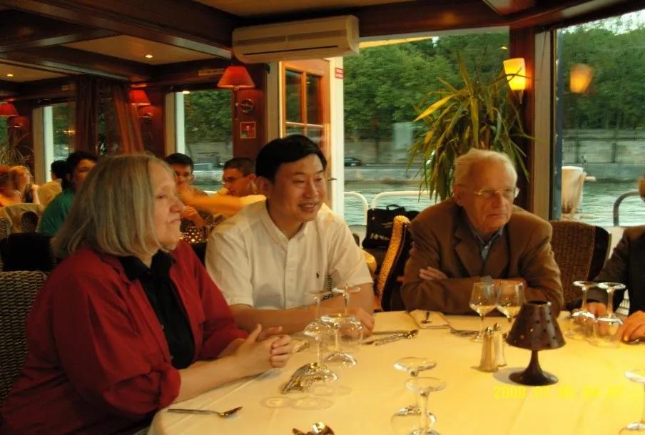 2008年李培林访问法国时与著名社会学家图海纳(Alain Tourraine)在塞纳河游轮上
