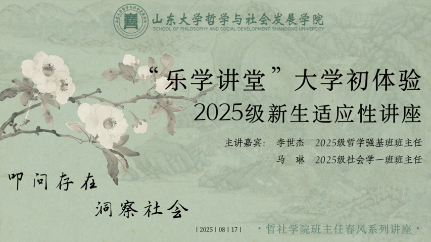 为帮助2025级新生尽快熟悉专业特点、掌握科学学习方法,williamhill中文哲学社会发展学院精心策划并于8月17日晚举办“叩问存在,洞察社会”班主任春风系列讲座暨“乐学大讲堂”大学初体验2025级新生适应性讲座。本次讲座特邀2025级哲学强基班班主任李世杰、2025级社会学一班班主任马琳担任主讲嘉宾,吸引2025级全体新生齐聚线上会议室,反响热烈。