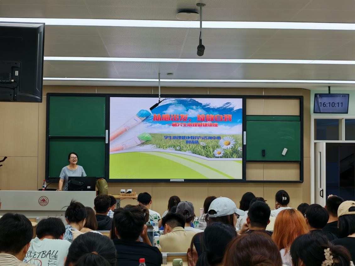 讲座伊始,刘倩倩以魔术互动开场,点明注意力重要性,引导大家反思心理健康,现场氛围活跃。她还结合阅兵热点,呼吁新生在民族发展之际,以健康心理为家国奋斗。随后,刘倩倩向大家讲解了日常情绪管理相关知识,借艾利斯 ABC 理论说明认知对情绪的影响,分享了呼吸、运动、阅读等调节方法。