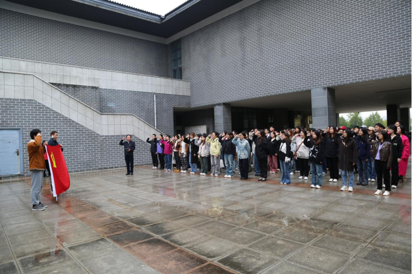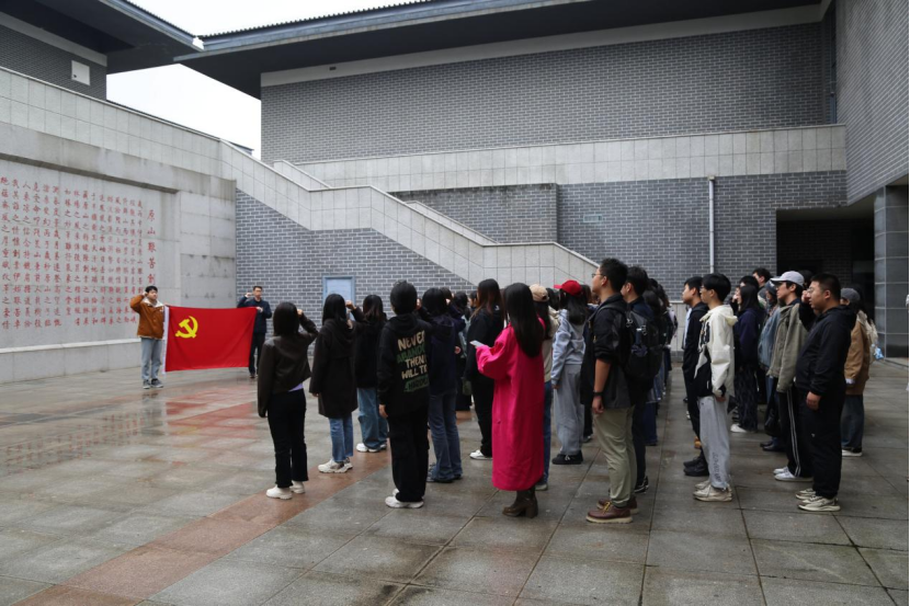 参观结束后,由优秀党员代表领誓,机关支部与各学生支部全体党员庄严面向党旗宣誓,重温了入党誓词。