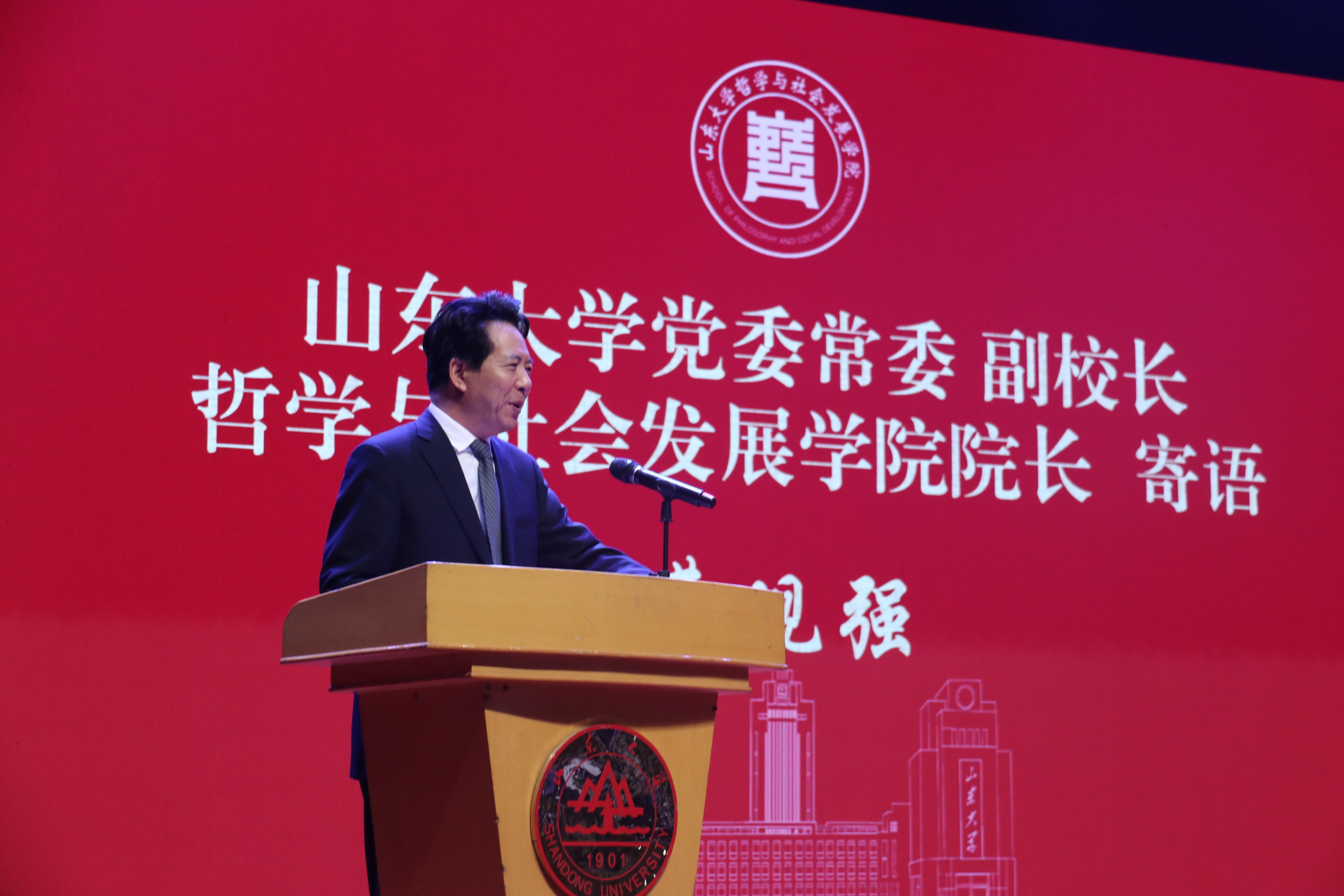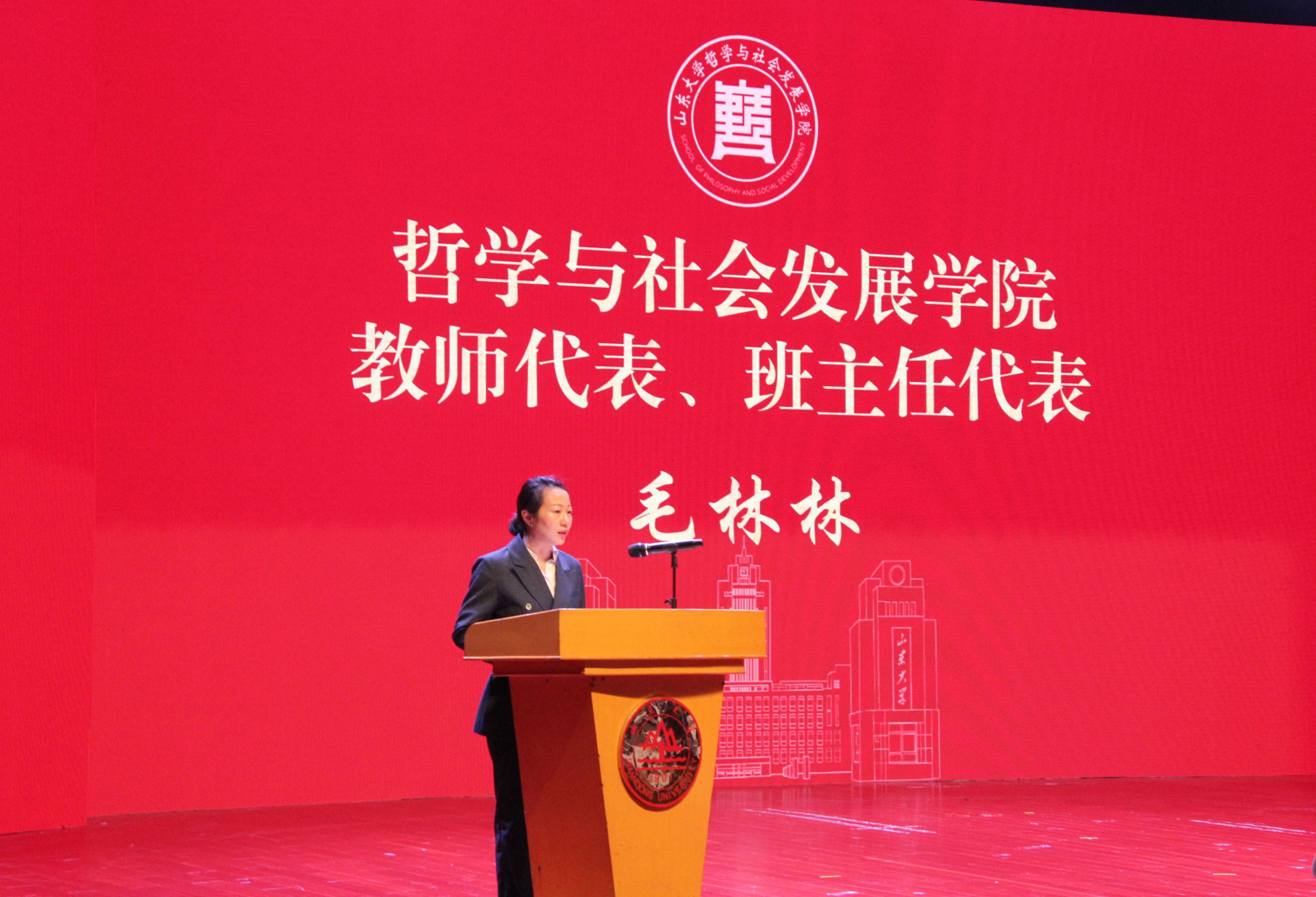 2023级哲学拔尖班本科生孙铭昊作为老生代表发言。他鼓励同学们跳出舒适区、深耕学术,在追问自我中找准方向,守护好自己的主体性和生命的整全,在学校和学院提供的广阔平台中不断提升能力,成长为有担当的山大人。