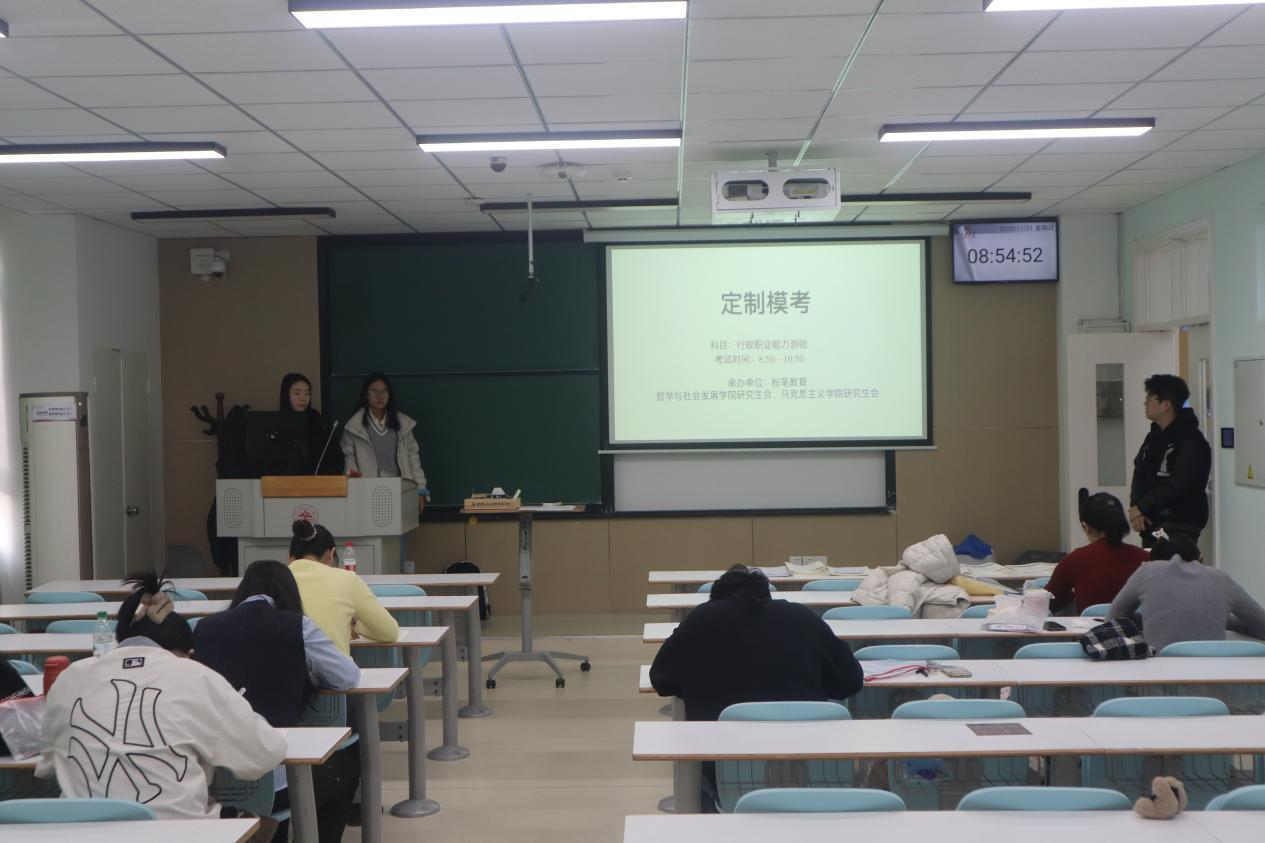 助力我校学生高效备战公考提升应试素质,11月23日,哲社学院研究生会与马克思主义学院研究生会,联合粉笔教育特别打造 “高校定制,模考未来” 公考模拟考试活动
