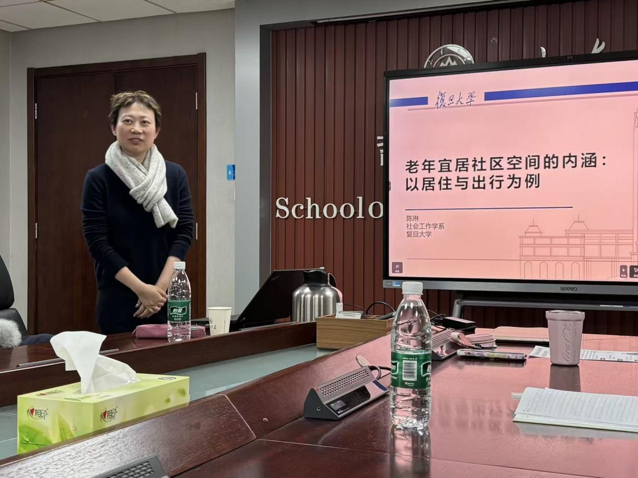 讲座聚焦两大核心议题,系统呈现了陈琳的最新研究成果。在“居室适老化改造过程中老年人的主观需求”部分,她结合社区居家养老趋势、老年人居住安全需求及上海相关政策背景,回溯积极老龄化与在地养老的研究脉络,通过非参与式观察与半结构化深度访谈等质性方法,深入剖析老年人在健康保障、社会参与等维度的核心需求及满足现状,揭示了老年人适老改造需求动态形成与调整的内在逻辑,并提出优化服务形式以适配需求变化的实践建议。