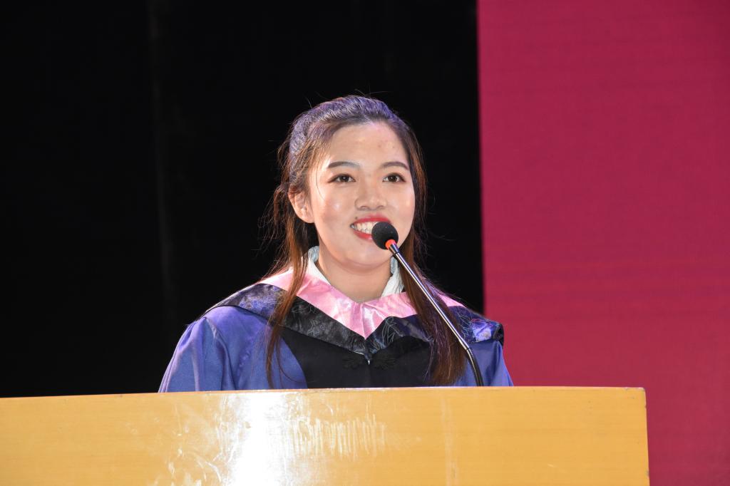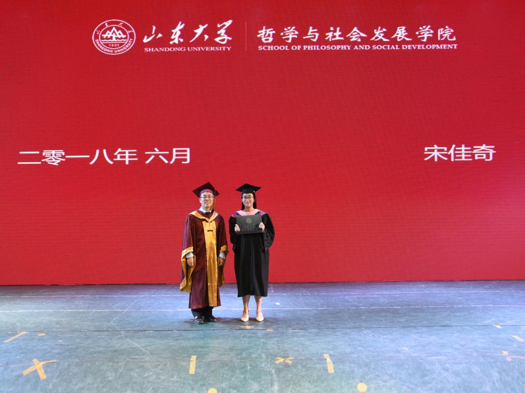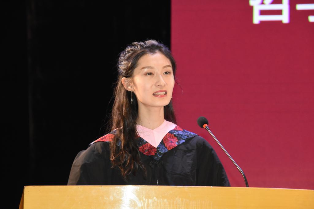 本科毕业生代表王明玉和研究生毕业生代表李佳琳分别回忆了她们在学校度过的多彩生活,并对同学们表达了对未来的祝福和希望。王明玉勾勒了“笃实好学、气有浩然、独立自信”三幅大学生活印象画笔,情到深处不禁潸然泪下。李佳琳则谈到了在哲社学院的7年成长历程,表达了在未来要秉承哲社学院优良传统,继续读书、思考,奉献新时代的信心和决心。