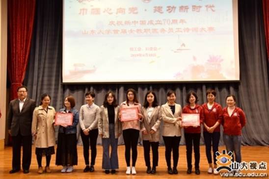 为了深入学习贯彻习近平新时代中国特色社会主义思想和党的十九大精神,继承和弘扬中国优秀传统文化,加强教职工校园文化建设,校工会、妇委会主办的“巾帼心向党·建功新时代”庆祝新中国成立70周年williamhill中文女教职医务员工诗词竞赛活动在中心校区举行。校党委常委、宣传部部长桑晓旻出席活动并为获奖单位颁奖。