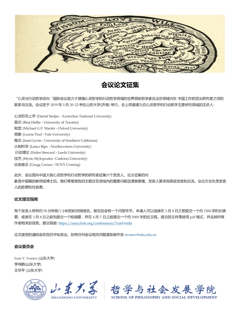 关于“心灵与行动哲学动向”国际会议征集会议发言人及论文的通知