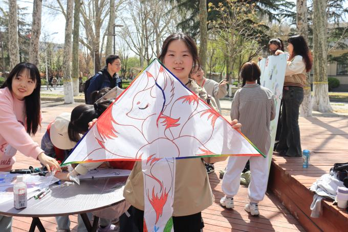 2023级社会学本科生王悦衡在活动中体验了非物质文化遗产的魅力:“古人有云,忙趁东风放纸鸢。阳春三月里正是放飞风筝的好时节,本次活动的绘制风筝环节妙趣横生、应情应景,同学们和来参观游览的小朋友们一起执笔演绎春天的灿烂与浪漫,展现独属于非遗的魅力与文明的斑斓色彩。风筝满载情思,将梦想放飞于天际。”