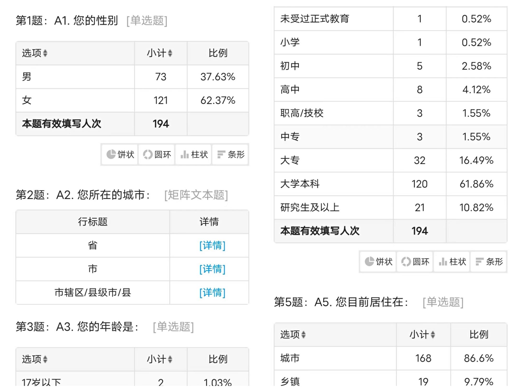 7月20日至27日,团队正式开展调研工作。通过线上、线下相结合的问卷调查和个人访谈,团队共收集194份有效问卷、13份访谈材料。问卷样本库在男女比例、所在城市、年龄结构、受教育程度等结构性因素上保持基本平衡;访谈对象覆盖山东省内临沂、滨州、泰安、济南、潍坊、青岛、威海7个地级市和11个县级行政区。总体看来,样本较为真实地反映了总体状况,为调研工作提供丰富的分析材料。