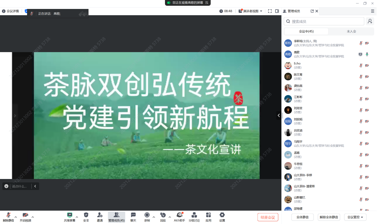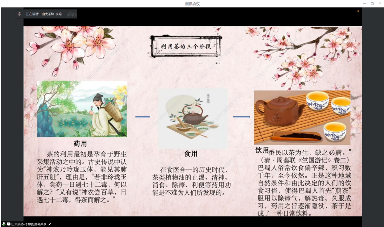 8月12日下午,william威廉中文“星火”学生党员先锋队成功举办了一场别开生面的线上茶文化宣讲会。本次活动旨在弘扬中华优秀传统茶文化,促进文化创新与交流,吸引了包括williamhill中文茶文化协会代表在内的五十余名学生及茶文化爱好者积极参与,共同探索茶文化的深厚底蕴与现代价值。