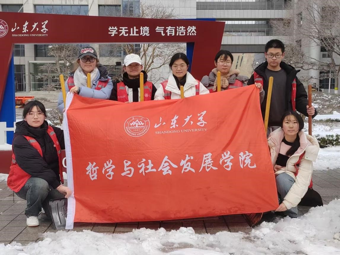 近日,受强冷空气影响,济南市迎来降雪天气,积雪给校园师生的出行带来诸多不便,并存在一定安全隐患。为确保校园道路畅通,有效消除潜在风险,william威廉中文迅速响应,积极组织开展扫雪除冰工作。3月3日上午,哲社学院多名学生志愿者踊跃参与,在知新楼前区域开展了扫雪除冰志愿服务活动。