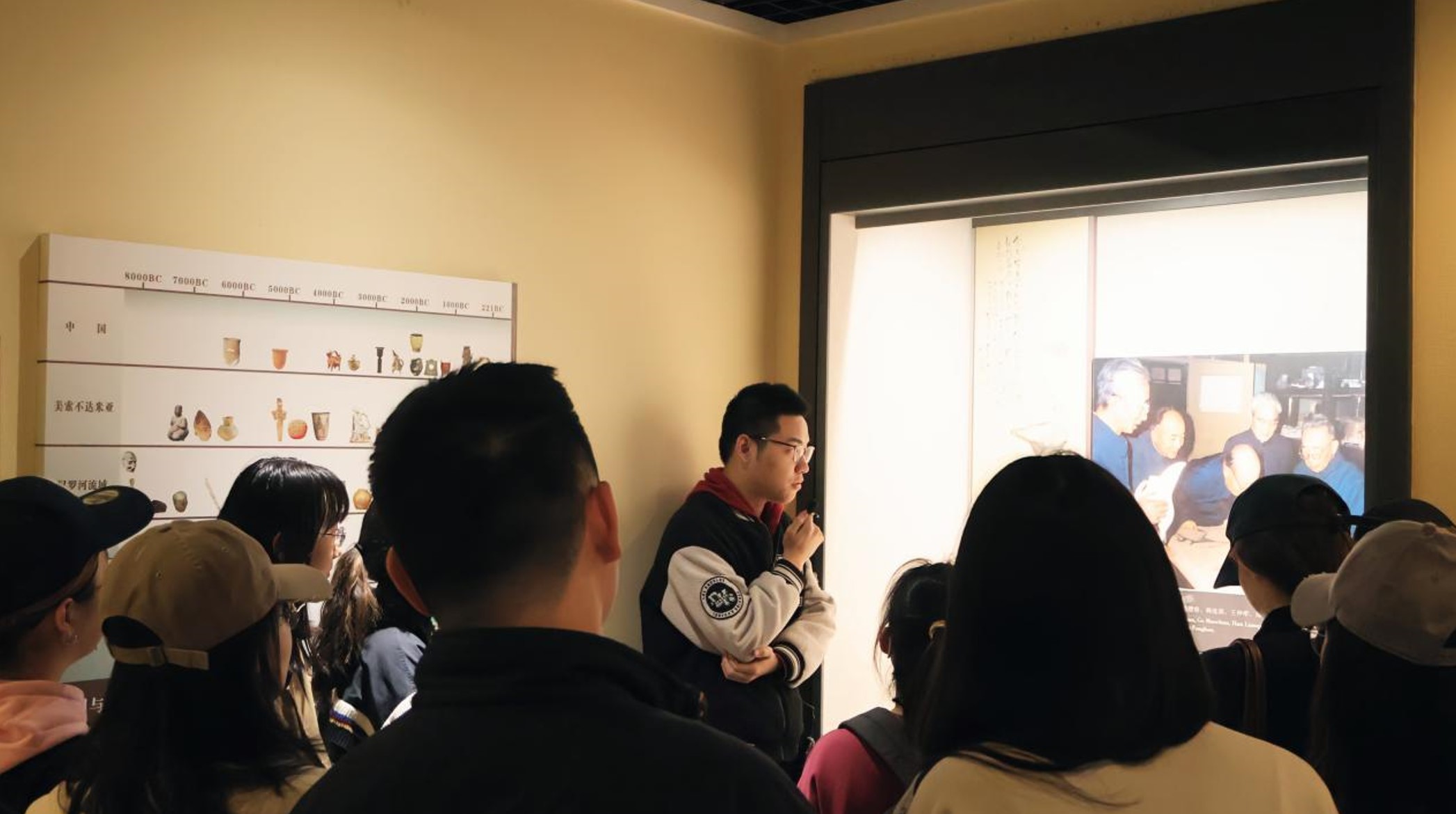 在校博物馆讲解员的带领下,团员们有序参观了“文明之光”、“东方重镇”、“郝国寻踪”和“春华秋实”四个主题展厅,从古朴的陶鼎陶杯到精美的青铜方座鸟柱,从大汶口文化中晚期阶段的焦家遗址到长清仙人台遗址,沉淀了五千年的华夏文明精华层层展开。透过一系列具有代表性的遗址、遗迹和文物,团员们在欣赏中学习,在思考中感悟,了解了williamhill中文考古专业在不同历史阶段所取得的重大发现和研究成就,深刻体会到中华文化的源远流长与博大精深。