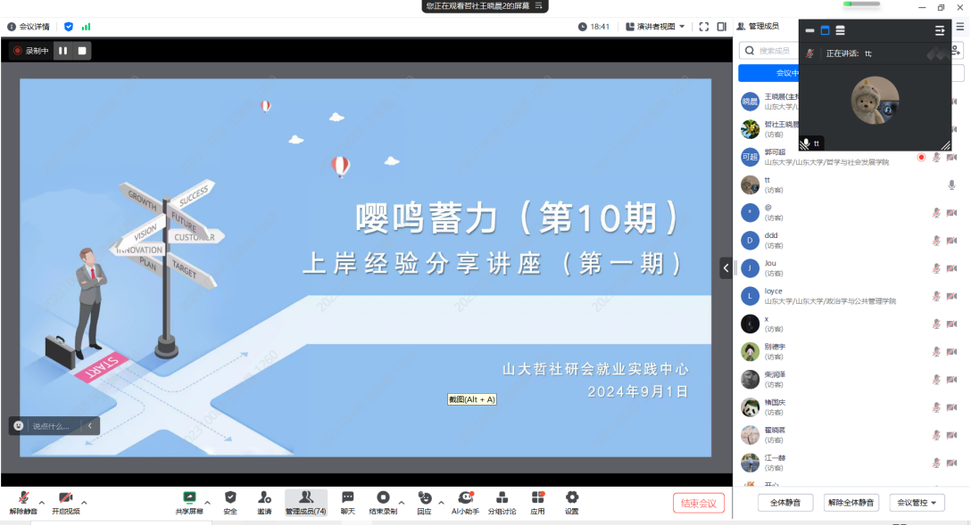 本次上岸经验分享会为同学们了解当前就业形势、树立正确就业观念以及提升求职备考技巧提供了充分有效的经验。未来,哲社学院研究生会将继续组织公考指导系列讲座,切实提升学院研究生的求职升学竞争力,助力高质量充分就业。