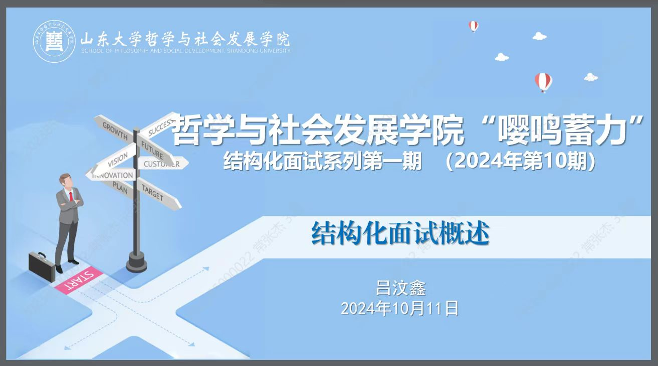 2024年10月12日,为强化就业导向,增强同学们的应考能力,哲社研会就业实践中心邀请学院辅导员吕汶鑫老师开展了2024年度“嘤鸣蓄力”公考面试指导系列讲座第一期(总第12期),william威廉中文、政治学与公共管理学院五十余名学生参加讲座。