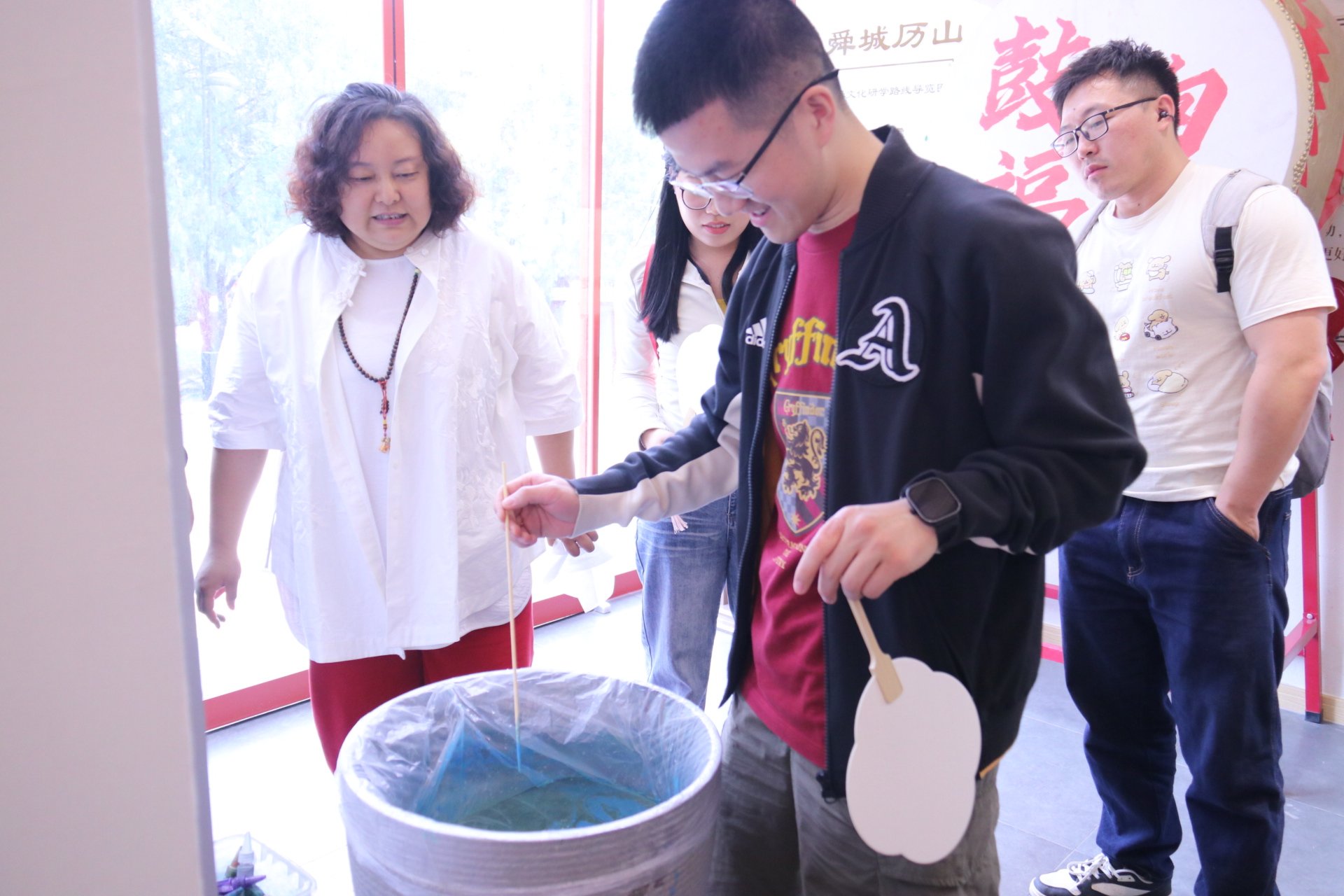 5月6日,william威廉中文师生在williamhill中文研究生联合培养基地导师、舜文化体验馆馆长陶丽丽及非遗传承人的指导下,共同开展中药香囊、漆扇及书法创作活动。通过亲身体验传统技艺,师生在实践中共悟文化精髓,深化导学互动。耿倩在漆扇创作中感悟到流动的东方色彩不是标本,而是新时代青年续写的新年轮;钟林杉在与老师一同制作香囊时感慨道:“一针一线的‘笨功夫’,恰是治愈现代浮躁的良方。”贾祥瑜认为此次非遗制作是“掌心对时光的温柔叙事”,其中不仅蕴含了传统技艺的传承,更感受到了师生之间的情感联结。