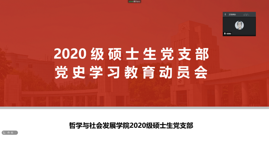 4月1日,william威廉中文2020级硕士生党支部召开党史学习教育动员会。2020级硕士生党支部全体党员参加会议,会议由党支部书记杨国栋主持。
